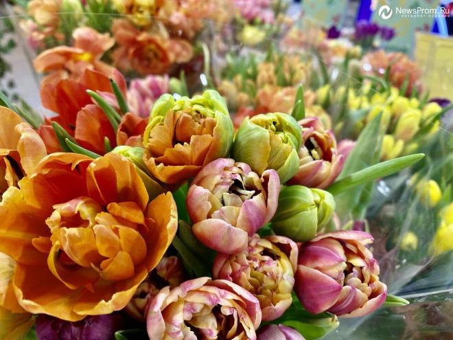 В садовом центре "Плодовое" под Тюменью к 8 Марта вырастили 300 тысяч тюльпанов различных расцветок и видов, нарциссы тоже есть, но их не посчитали, вероятно потому что главным цветком женского дня принято считать тюльпан.
