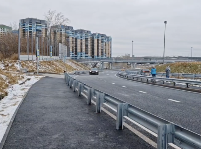 Общая протяженность двух съездов – около 400 метров. Обустроены тротуары, освещение, нанесена разметка.