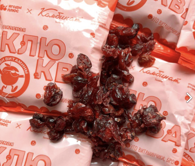 Ягоды упакованы порционно по 30 граммов, в них содержатся необходимые растущему организму витамин C, витамины группы B, а также K и E. По данным КПШ, вяленая клюква очень популярна у детей.