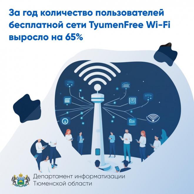 Региональная сеть бесплатного Wi-Fi TyumenFree работает по всей Тюменской области. Всего жителям доступно 186 точек. За год общее количество подключений составило более 6,7 млн, 2 млн из них в аэропорту, количество пользователей сети выросло на 65%, сообщает депинформатизации региона.