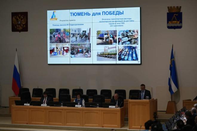Глава города Максим Афанасьев подчеркнул значимость общественного проекта "Тюмень для Победы" и специального счета "Победа" городского Совета ветеранов. "На сегодняшний день собрано уже более 170 млн рублей, которые направляются на приобретение необходимой техники, коптеров, систем противовоздушной обороны, медикаментов и других важных вещей, заказанных командирами воинских подразделений", - отметил Афанасьев.