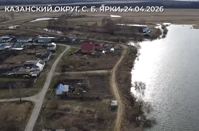 Видеосъемку поймы реки Ишим в Казанском округе, где уровень воды значительно поднялся, с высоты птичьего полета губернатор Тюмеской области Александр Моор опубликовал в своем канале на платформе "Макс".
