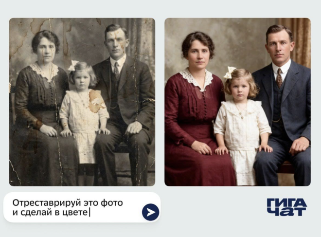 Редактирование изображений в ИИ-помощнике ГигаЧат вышло на новый уровень благодаря обновлённой модели Kandinsky 6.0 Image. У пользователей появился бесплатный ИИ-инструмент редактирования профессионального уровня, без ограничений по количеству генераций. Флагманская модель работает до двух раз быстрее, лучше понимает сложные запросы и создаёт более детализированные изображения. Появились новые возможности редактирования: реставрация снимков, стилизация под актуальные визуальные тренды, нейрофотосессии, смена одежды и локации, ретушь и макияж. Kandinsky стал значительно лучше разбираться в актуальных темах — благодаря встроенному поиску по изображениям.