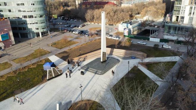 Стелу "Город трудовой доблести" открыли в понедельник в сквере Машарова в Тюмени, в ее основание заложили капсулу с посланием в 2045-й год.
