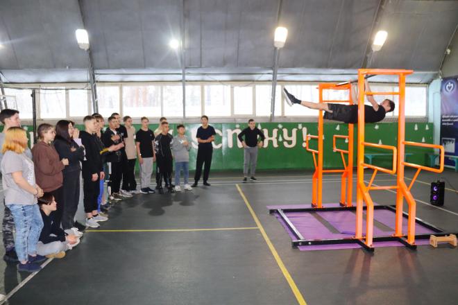 Спортсмены продемонстрировали свое мастерство на турнике, брусьях, перекладинах, показали красивейшие и экстремальные упражнения, вызывающие аплодисменты зрителей, научили базовым элементам работы на тренировочных комплексах, а также предложили в последующем приобщаться к таким занятиям во дворах своих домов по месту жительства.
