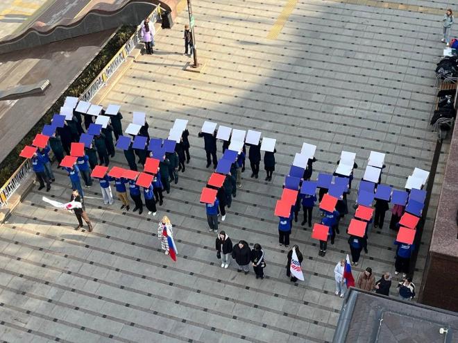 В Тюмени состоялся флешмоб в честь дня рождения президента России Владимира Путина, участие от "Молодой Гвардии" приняли более 70 человек – представители УФСИН, ФССП, МЧС, Тюменского колледжа управления, экономики и права.