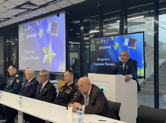 Тюменская область присоединилась к федеральному проекту российского общества "Знание" "Вахта героев". В главном корпусе ТюмГУ состоялось пленарное заседание мероприятия, в рамках которого студенты региона встретились с Героями России - Владимиром Шарпатовым, Владимиром Беловым, Анатолием Копыркиным, Александром Кузнецовым, Олегом Лобунцом, Владимиром Легошиным, Никитой Палазником, Игорем Станкевичем, Виктором Федосовым, Михаилом Марцевым, Рустамом Сайфуллиным.