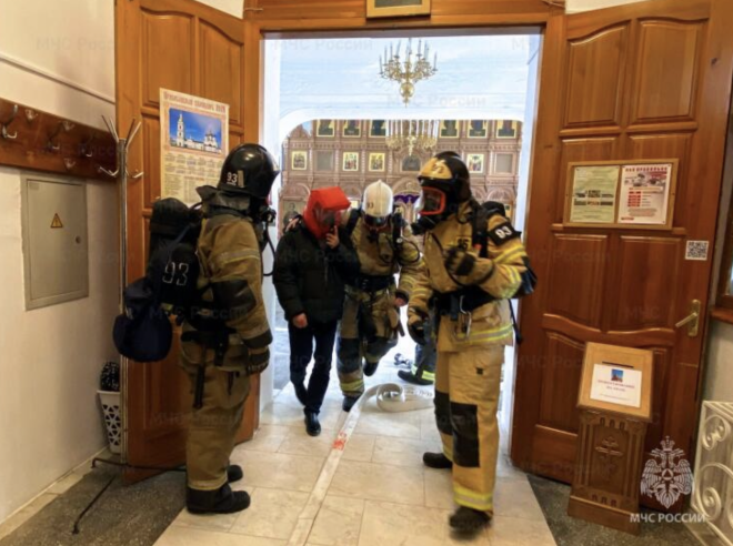 Прибывшие на место вызова сотрудники подразделений Главного управления МЧС России по Тюменской области провели "эвакуацию" прихожан, ликвидировали "пожар".