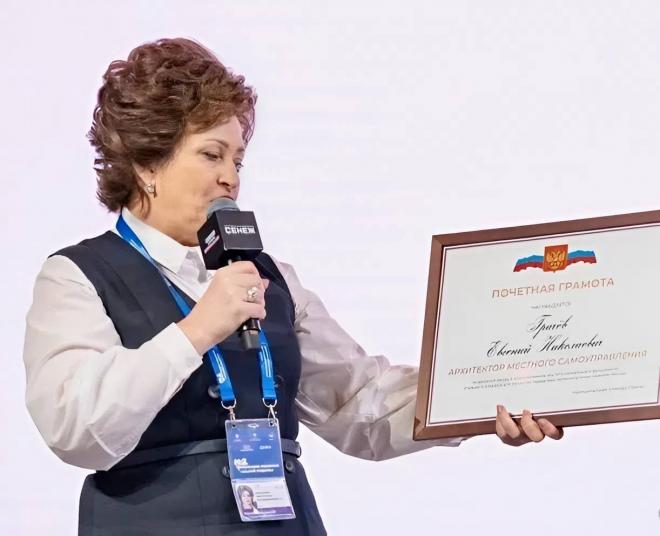 Вместе с Грачевым муниципалитеты наградили и Ирину Гусеву, сопредседателя Всероссийской ассоциации развития местного самоуправления(ВАРМСУ) - она получила почетную грамоту "Сердце муниципального сообщества".