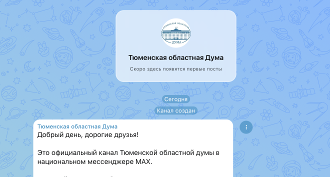 На платформе МАХ начал работу и канал Тюменской областной думы. В нем будет публиковаться информация о заседаниях, и мероприятиях регионального парламента, принятых законопроектах, а также официальные комментарии депутатов. Канал в мессенджере MAX дополняет уже существующие официальные страницы в других социальных сетях, делая коммуникацию более доступной и удобной.