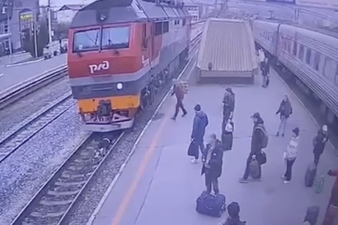 На железнодорожной станции Тюмень мужчина решил пренебречь правилами безопасности и пошел к прибывающему поезду не по подземному или надземного переходам, а прямо по путям, запнулся за рельс и упал прямо под колеса локомотива, остаться невредимым он смог благодаря тому, что упал между рельсами - даже не травмировался, однако штраф ему, скорее всего, придется оплатить.
