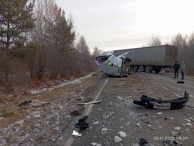 На 17-м километре региональной автодороги Тобольск - Вагай при столкновении КамАЗа с полуприцепом, грузового фургона "Газель" и автофургона Mercedes 62-летний водитель КамАЗа, 50-летний водитель и 18-летняя пассажирка Mercedes получили травмы, 66-летний пассажир Mercedes погиб.