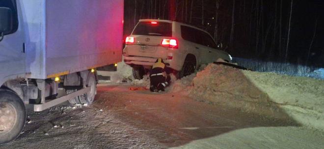 На 20-м километре федеральной автодороги Тюмень–Омск, в районе посёлка Боровского, в сильный мороз автомобиль Toyota Land Cruiser съехал в кювет. Инспекторы полка ДПС оперативно остановили проезжавший мимо автомобиль и ограничили движение, чтобы обеспечить безопасность и помочь вытащить машину.