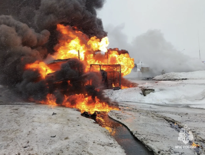 Пожар произошел на АЗС в поселке Солнечный Сургутского района произошел около полудня, по прибытии первых пожарно-спасательных подразделений происходило горение грузового автомобиля "МАЗ" (бензовоз) по всей площади, существовала угроза распространения огня, сообщает ГУ МЧС Югры.
