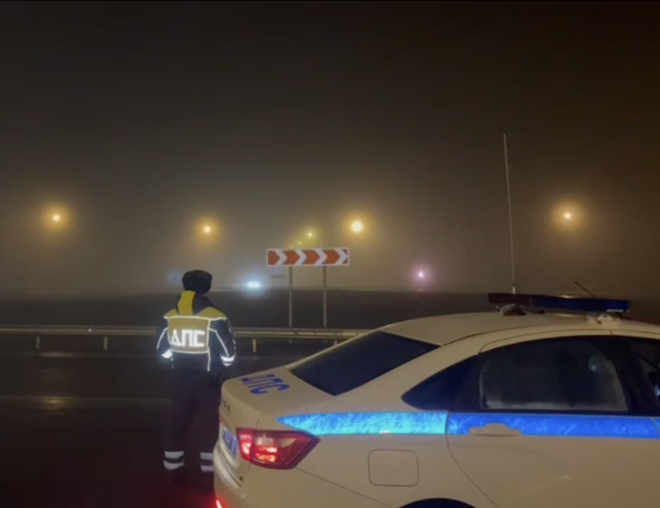 На 124-м километре автодороги Курган-Тюмень в Исетском районе видимость на трассе менее 100 метров из-за тумана, работает наряд ДПС.