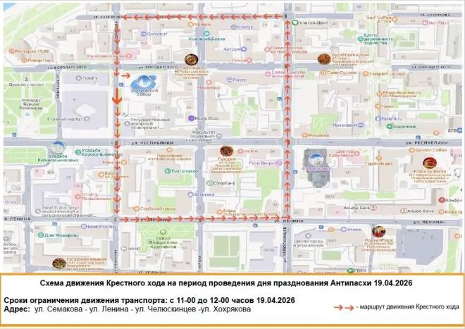 19 апреля в центральной части города Тюмени, в квадрате улиц Семакова – Ленина – Челюскинцев – Хохрякова, пройдёт Крестный ход в день празднования Антипасхи. Начало шествия – в 11 часов. Движение транспорта запретят.