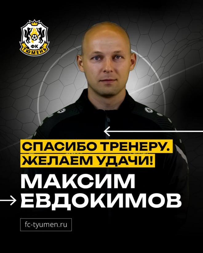 Тренерский штаб футбольного клуба "Тюмень" покидает Максим Евдокимов. Помощник главного тренера Тимура Касимова получил предложение о работе в другом городе и вскоре уедет из Сибири. Евдокимов работал в клубе почти десять лет и отметил, что будет вспоминать это время с любовью, а "Тюмень" навсегда останется в его сердце.