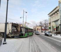 Автобус и мусоровоз не поделили дорогу в центре Тюмени